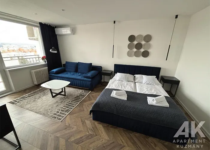Apartment Kuzmany boasts a balcony and a seating area, complete with ironing facilities and climate control, as well as a cable TV with on-demand films. The accommodation is also furnished with a sofa set and a work desk. Beds fitted with hypoallergenic down pillows are at guests' disposal. For added convenience, a separate toilet and a bath are available at the apartment. Moreover, there are a hairdryer and bath sheets as well.